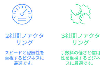 | 2社間・3社間どちらも対応 | 取引先に知られず利用することも可能。 |