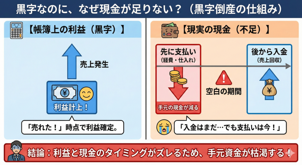 「黒字なのにお金がない」という状態に陥ります。