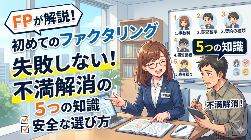 本記事では、資金繰りの専門家であるFP(ファイナンシャルプランナー)が、初めてのファクタリングで絶対に失敗しないための「5つの必須知識」と「安全な会社の選び方」を徹底解説します。